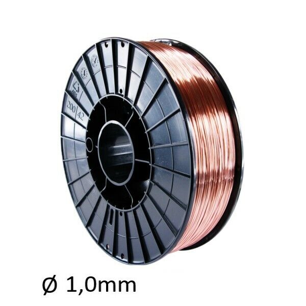 Bobina di filo ramato usato per saldatrici a filo , peso complessivo 5kg diametro 0.6, 0.8, 1,0 , 1,2mm. Made in italy .