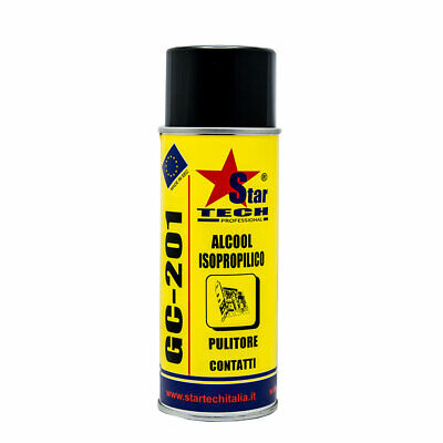 Pulitore universale a rapida evaporazione per contatti elettronici ed elettrici. A base di Alcool Isopropilico è fortemente attivo nei confronti, sporco, grasso residui carboniosi, residui di flussanti di saldatura etc. E’ indispensabile per ogni operazione di pulizia siano essi contatti ramati, striscianti , testine video, lettori laser, relè, contattori, parti macchina di computer, fotocopiatori, hardware di ogni tipo,, macchine fotografiche, video, strumentazione etc. . Pur presentando un forte potere sgrassante pulente STAR GC-201 non presenta alcun effetto nei confronti di elastomeri, materie plastiche , gomme parti verniciate, etc. Impiegato su apparati elettrici e buona prassi non operare se gli stessi sono in tensione, assicurarsi comunque che il prodotto sia completamente evaporato prima di inserire nuovamente l’alimentazione al circuito.