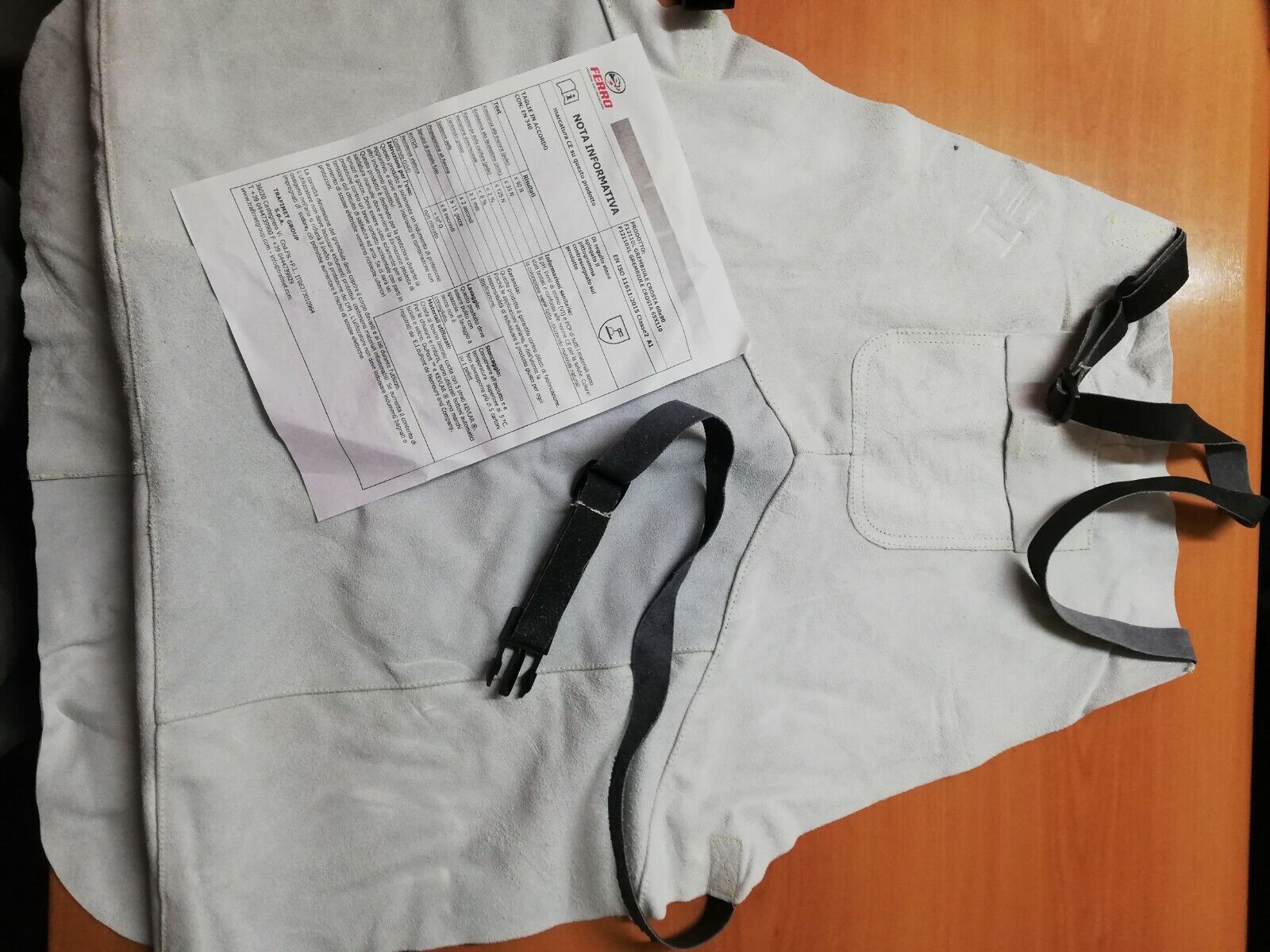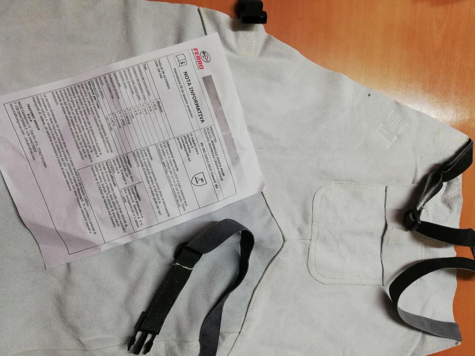 N. 1 GREMBIULE SALDATORE IN CROSTA ALTA QUALITA’ LACCI NYLON GANCI AUTOM. CUCITURE KEVLAR.
