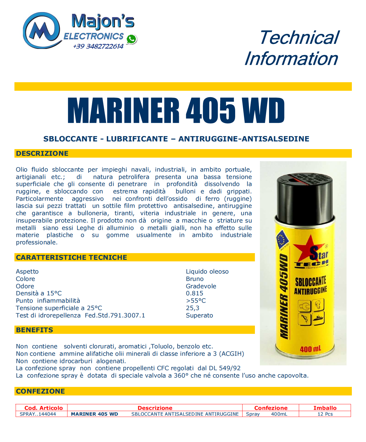 Di natura petrolifera presenta una bassa tensione superficiale che gli consente di penetrare in profondità dissolvendo la ruggine, e sbloccando con estrema rapidità bulloni e dadi grippati.